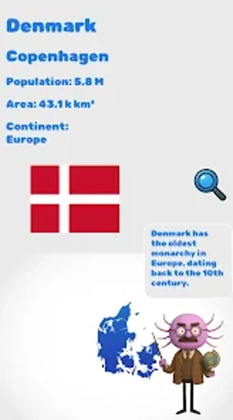 Kinito Countries serve como uma introdução básica à geografia, ajudando os usuários a se familiarizarem com nomes de países, suas capitais e até alguns fatos interessantes aleatórios sobre sua história. Kinito o guia por todo o jogo. No entanto, suas respostas são limitadas e muitas vezes roteirizadas—você notará isso depois de usar o aplicativo por um tempo.